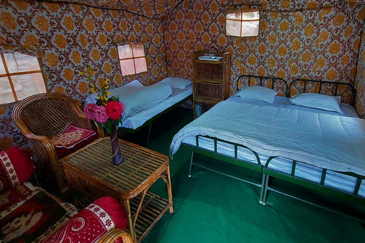 Terrific in every sense, the deluxe tents nestle midst the serene views of great natural beauty. The deluxe tents are in designed in a way that every kind of traveller falls in love with that encircles them, be it honeymooners, families with kids, solo travellers, adventure seekers, and more. With the beautiful ambiance and top-class services like fully-furnished deluxe tents, open seating area, free Wi-Fi, free parking, kids’ activities, and more, the friendly staff will surely make your stay a memorable one!