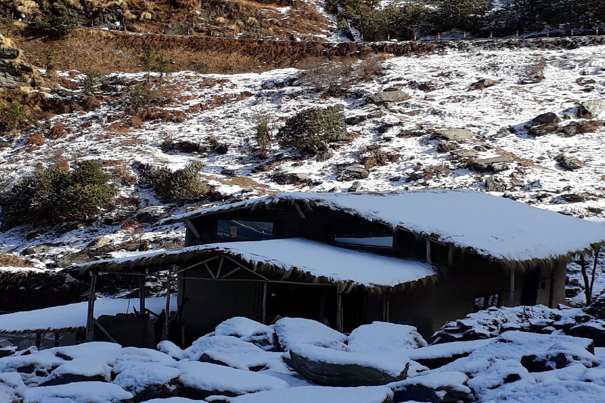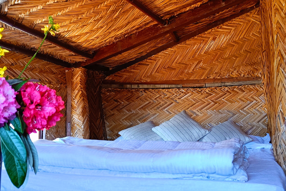 Designed specifically for the backpacking travellers the Mud Hut is a perfect blend of a hostel and a home away from home. Made with local stone and wood, the rustic Mud Hut takes you back to your roots and let's you connect with nature in a unique way. The three small cosy rooms on the first floor keep you warm during winters due to the thatched roof and mud & cow dung plaster on the walls. The Hut has a private sit out and a common indoor sitting area also.